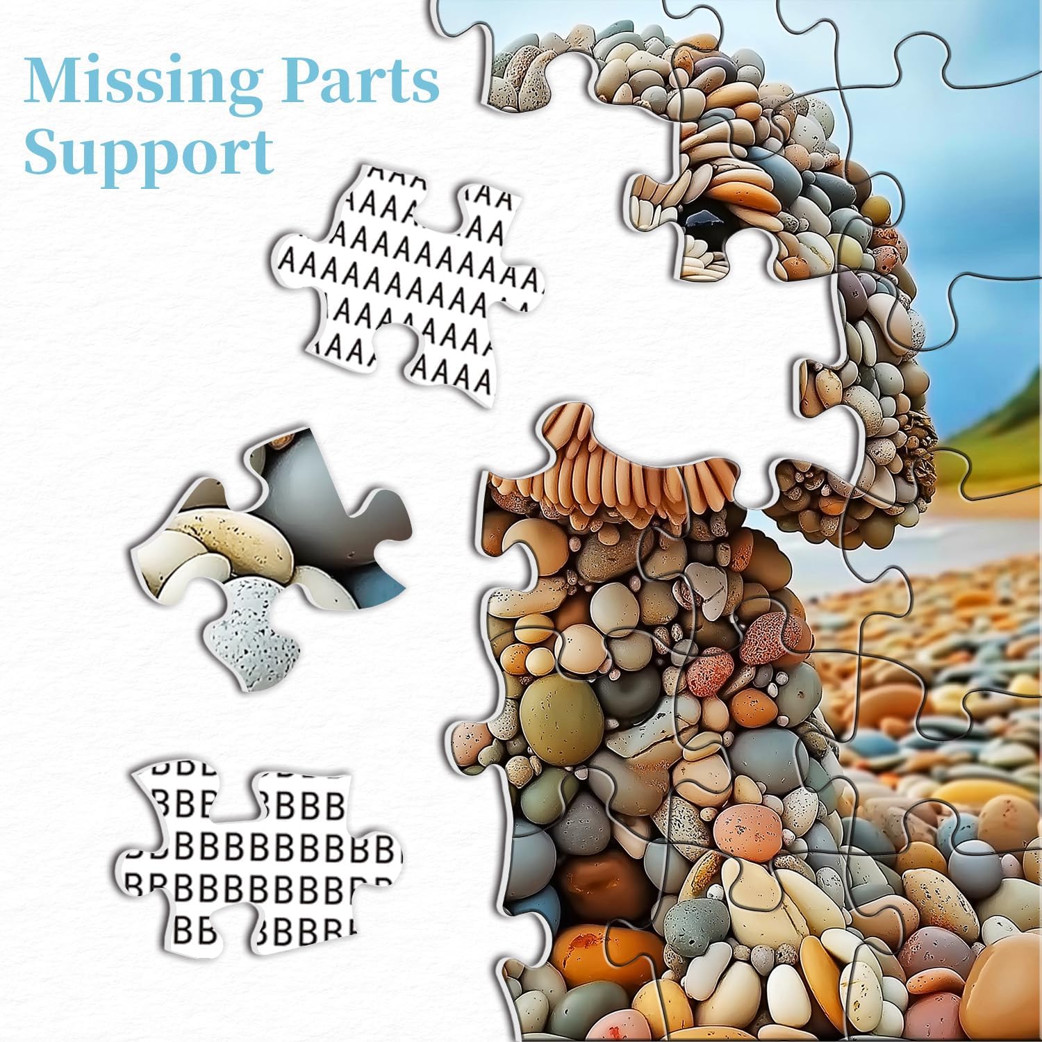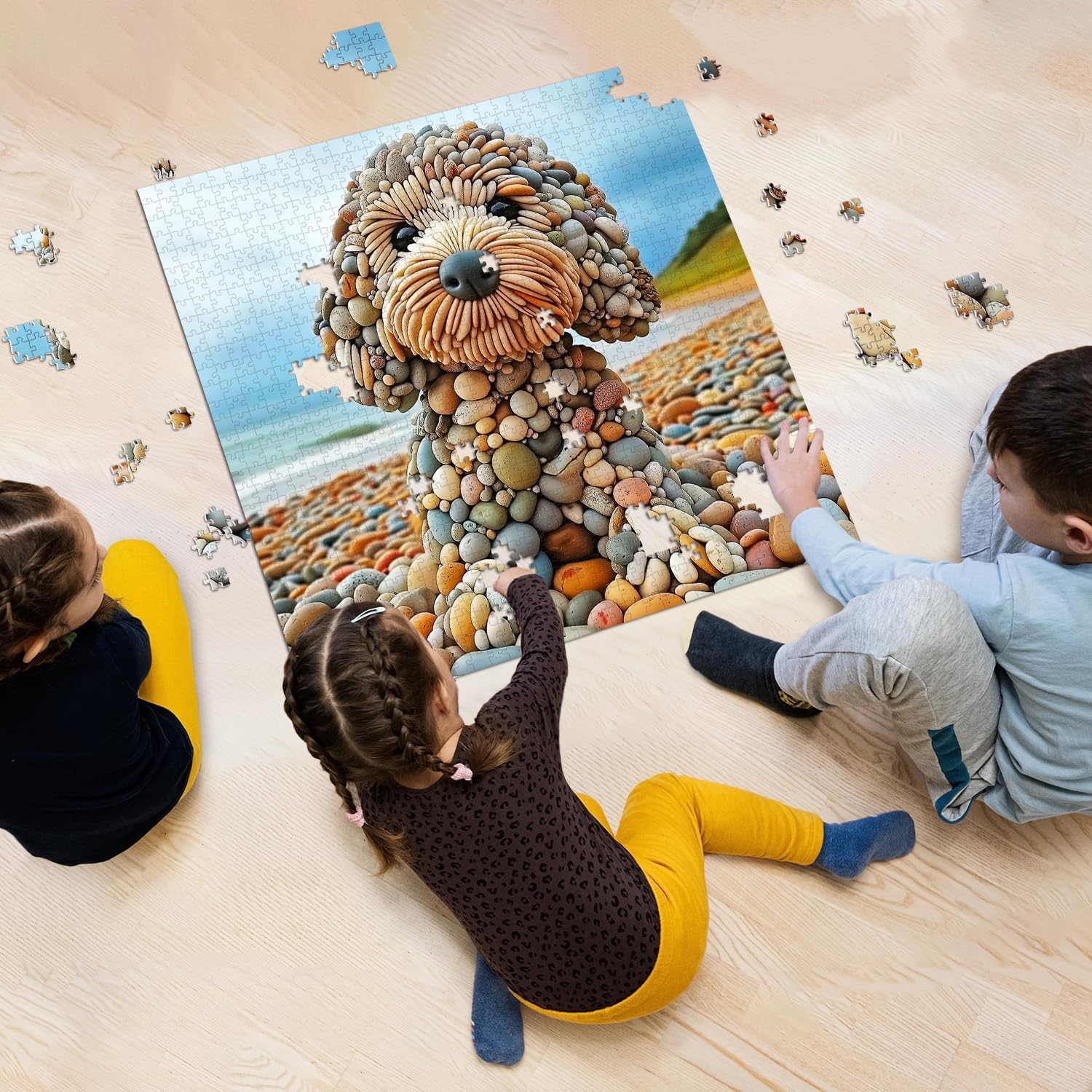 Funny Dog Jigsaw Puzzles 1000 Pieces for Adults, PICKFORU Summer Beach Guardian Dog Puzzle Cute, Interesting Seaside Stone Puppy Theme as Home Decor